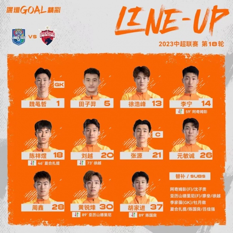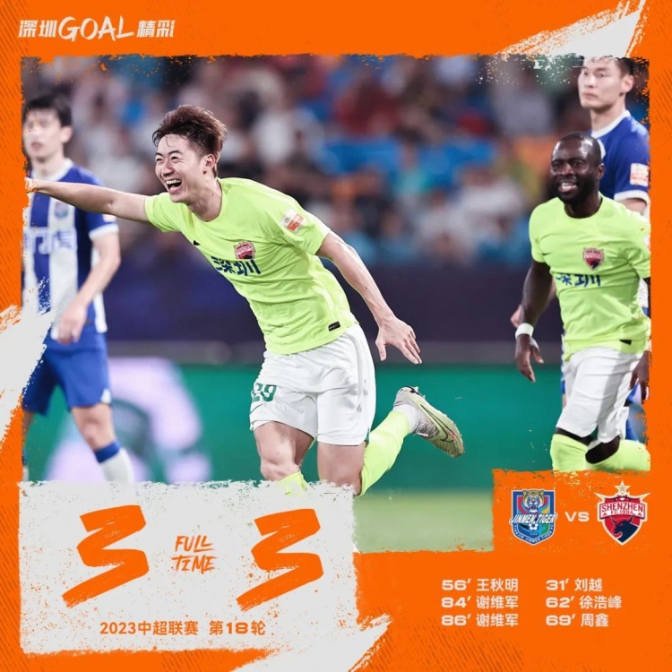 7月21日晚,2023中超联赛第18轮深圳队客场对阵天津津门虎的比赛在天津泰达足球场进行。深圳队本场比赛首发队员以全华班以年轻队员为主,阿奇姆彭和亚历山德里尼替补待命。比赛中,刘越、徐浩峰和周鑫先后进球,天津队在比赛末段连追两球,深圳队最终在客场以3比3战胜对手,获得宝贵的一分。