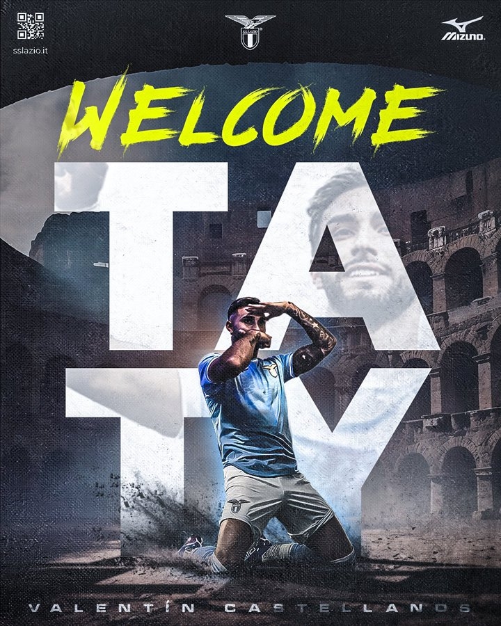 直播吧07月21日讯 拉齐奥官方消息,球队签下纽约城的24岁前锋瓦伦丁-卡斯特拉诺斯,据此前罗马诺报道,转会费1500万欧。