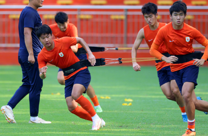 山东泰山U21在基地内进行积极训练,备战U21联赛决赛第二阶段