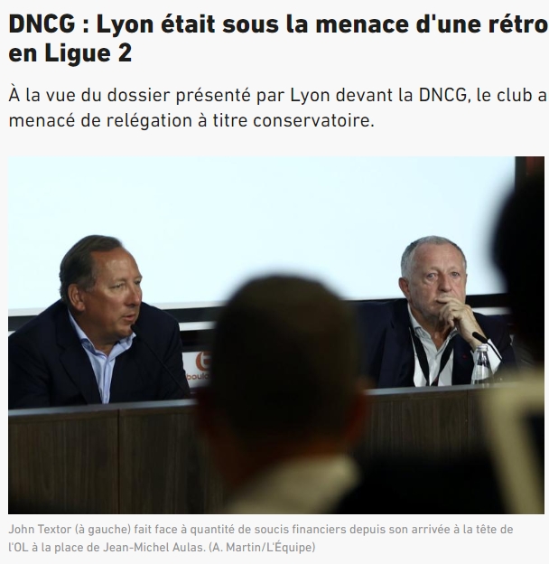 7月4日,DNCG(法国职业联盟财务控制委员会)对里昂处以了“限制薪资及转会费支出”的处罚。7月18日,法国足协上诉委员会维持了这一判决。6月17日,DNCG致信里昂要求泰克斯特于6月30日之前注资6000万欧元,从而让俱乐部有一份更为体面的财务报表。里昂新的管理团队并没有对此感到惊讶,然而他们直到截止日并没有向俱乐部进行注资。