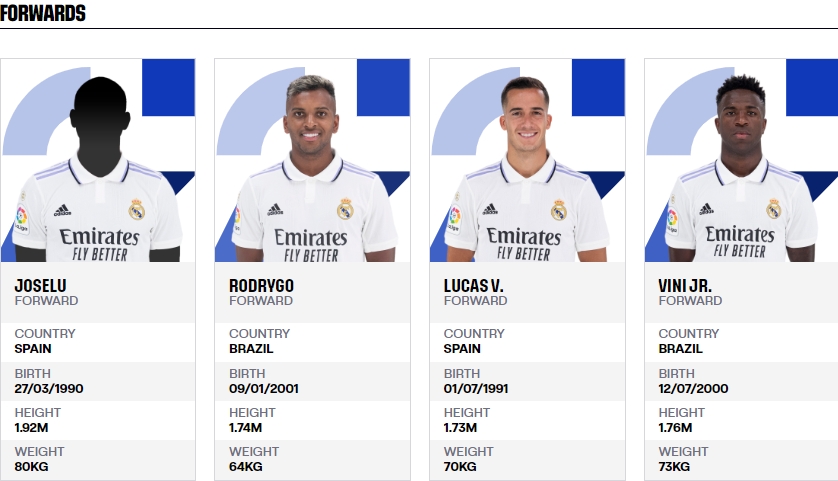 直播吧7月29日讯 西甲官方网站更新了各队的阵容信息,从中可以看到,皇马夏窗的5名新援已经全部完成注册。