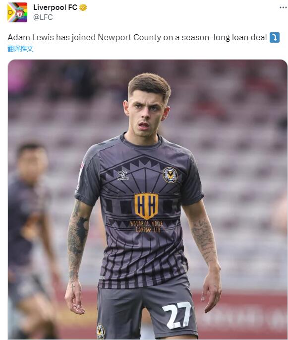直播吧7月29日讯 利物浦官方消息,队内23岁后卫球员亚当-刘易斯租借加盟英乙球队纽波特。