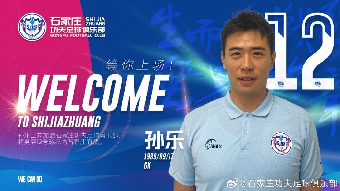 #功夫足球生而无畏战至终章# 经与本人协商一致,球员孙乐正式加盟石家庄功夫足球俱乐部。孙乐将身穿12号球衣为石家庄而战。孙乐在场上司职守门员,1989年9月17日出生,曾经效力于效力于上海上港、苏州东吴、南通支云。欢迎孙乐加入石家庄功夫足球队。
