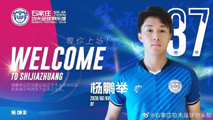 #功夫足球生而无畏战至终章# 经与大连人足球俱乐部、球员本人协商一致,球员杨鹏举租借至石家庄功夫足球俱乐部。杨鹏举将身穿37号球衣为石家庄而战。杨鹏举在场上司职中后卫,2000年6月6日出生,曾经效力于大连人、淄博蹴鞠、北京北体大队。欢迎杨鹏举加入石家庄功夫足球队。
