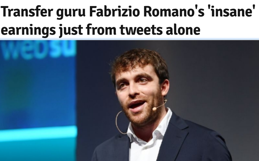 罗马诺的努力得到回报,根据推特新推出的创作者广告牌收入分成,罗马诺每个月可以从推特收入86780美元,相当于每年约104万美元。