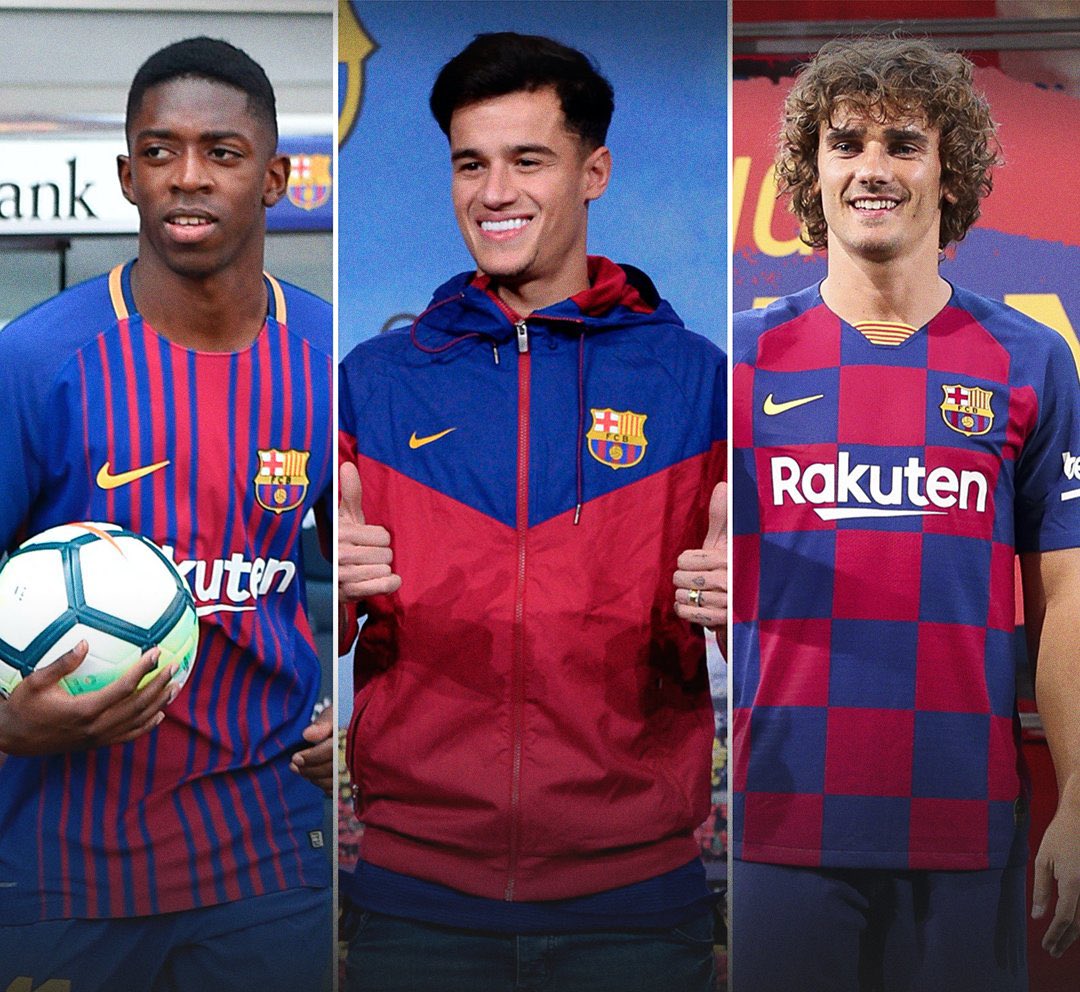 2019/20赛季夏窗,巴萨以1.2亿欧元的转会费从马德里竞技签下格列兹曼,在球队效力两年后便租借重回马竞,最终在2023年7月被马竞以2000万欧元的转会费买断。格列兹曼代表巴萨出场102场,贡献35球17助。
