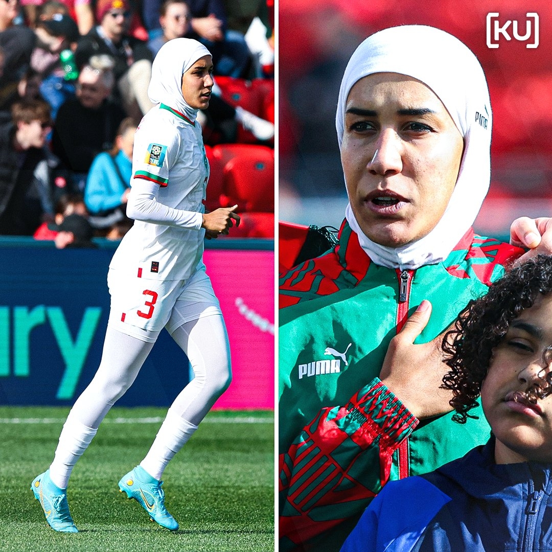 摩洛哥女足后卫班齐娜佩戴头巾比赛,成为女足世界杯历史第一人