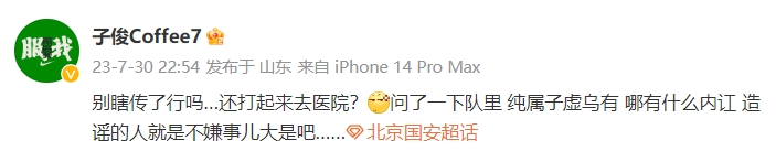 目前北京电视台跟队记者、媒体人徐江、记者汤幸均对此说法进行了辟谣。