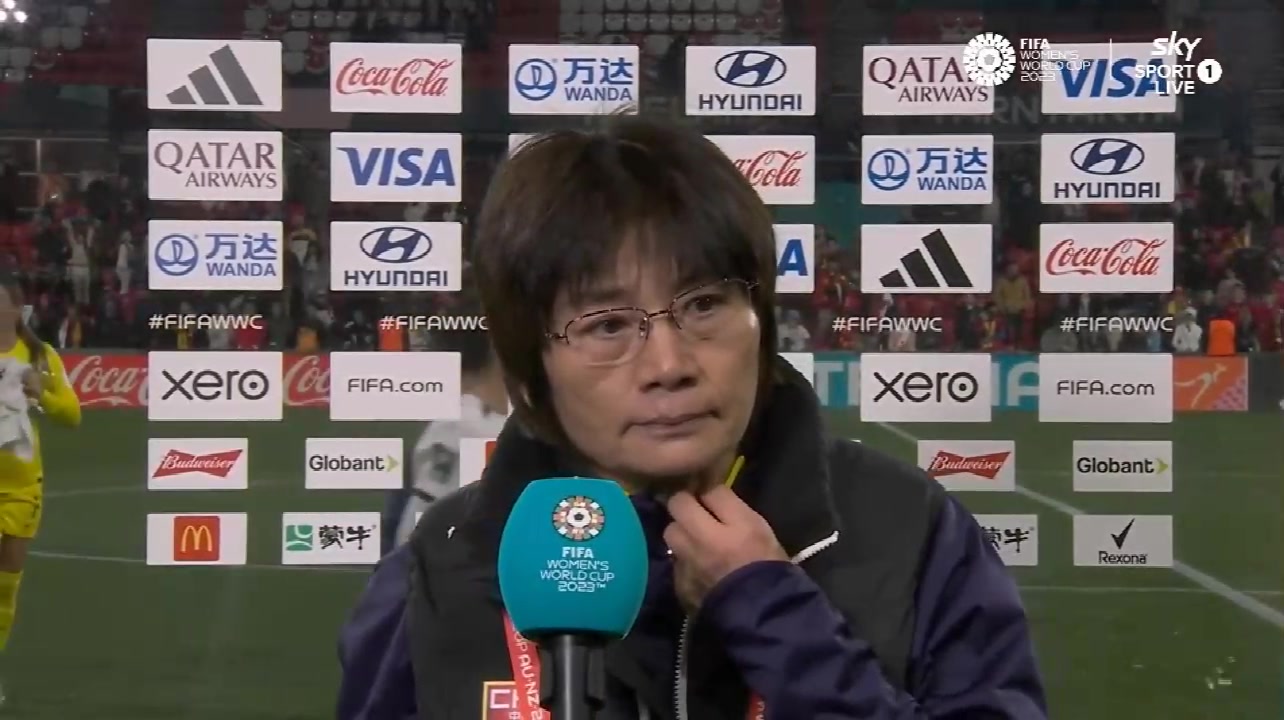 直播吧8月1日讯 中国女足1-6不敌英格兰女足小组出局,赛后中国女足主帅水庆霞接受场边采访。