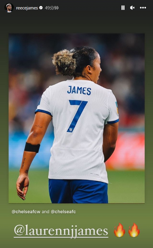直播吧8月1日讯 英格兰女足世界杯小组赛6-1击败中国女足,劳伦-詹姆斯本场2球3助攻。球员的哥哥——切尔西后卫里斯-詹姆斯社交媒体晒出妹妹的赛场图。
