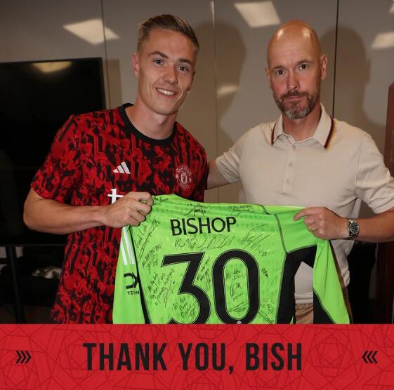 曼联官方表示,俱乐部全体成员祝福毕肖普这位深受球队欢迎的年轻球员在新生涯中一切顺利。主帅滕哈赫向毕肖普赠送了一件有全队签名的纪念球衣,感谢他为球队做出的贡献。