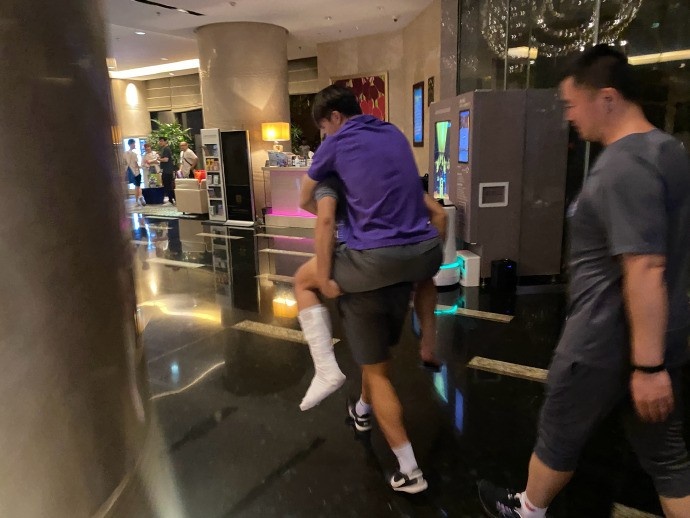 经影像初步诊断,明天左脚楔骨骨裂,回津后将进行进一步诊断与治疗。