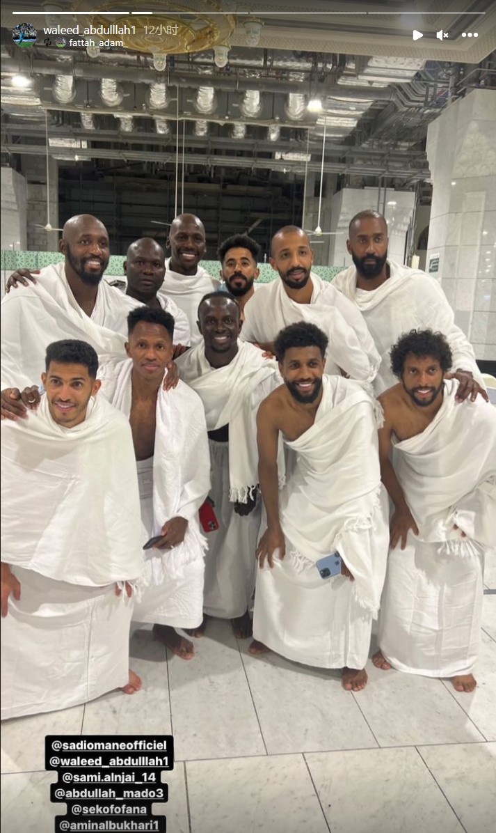 照片中除了瓦利德-阿卜杜拉和马内之外,还有萨米-纳杰、阿卜杜拉-马杜、塞科-福法納以及阿明-布哈里等利雅得胜利球员。