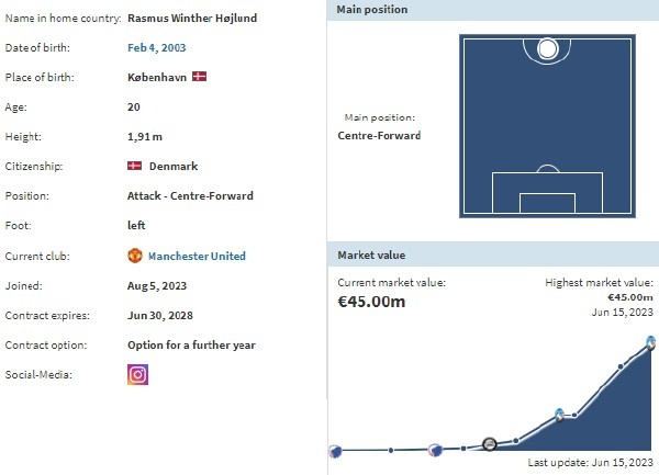 半年前在欧预赛上大杀四方,曾被很多媒体拿来与C罗作比较。加上速度快、冲击力好,球风有些酷似哈兰德,或许这是曼联不惜重金买下他的原因。