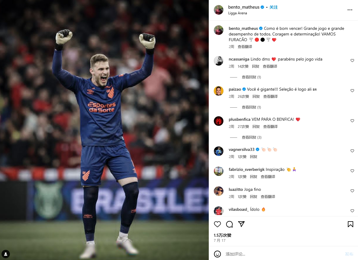 此前Relevo表示,国米想要引进本托,而球员随后证实:“国米的报价已经到来,我已经和俱乐部的体育管理部门谈过,我的梦想现在交付在了俱乐部主席手上。”