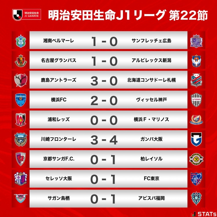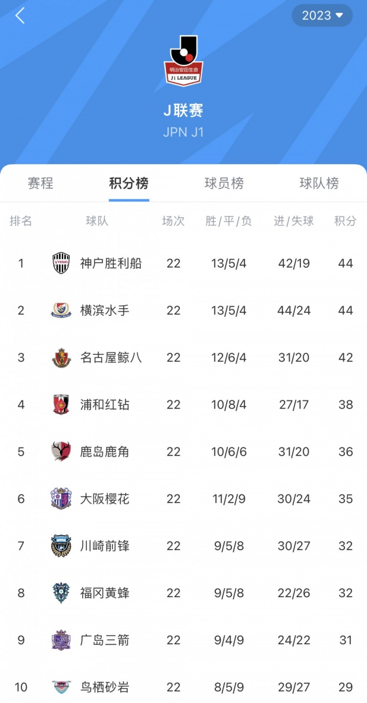 直播吧8月6日讯 J1联赛第22轮全部比赛于今晚落下帷幕。在已进行的比赛中,神户胜利船0-2爆冷不敌保级球队横滨FC,继上轮补赛战平川崎前锋后已两轮不胜,目前以净胜球优势暂时排在联赛榜首;横滨水手0-0战平浦和红钻,未能在积分榜上反超神户,浦和红钻方面前日本国脚中岛翔哉上演回归J联赛首秀;大阪樱花0-1不敌东京FC,香川真司在与老友长友佑都的直接交手中不敌,东京FC中场松木玖生取得赛季首球;大阪钢巴伤停补时第5分钟上演绝杀,最终4-3战胜川崎前锋。