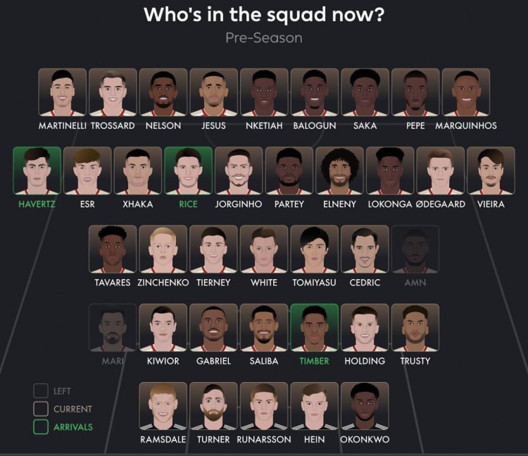 补强的同时并没有清理“冗员”,阿森纳多线出击的意图非常明显。