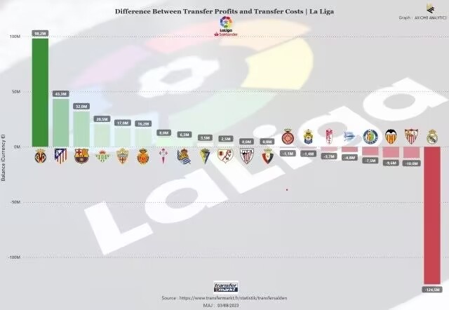 (图:皇马是整个西甲支出最多的球队,展示了健康的财政状况)