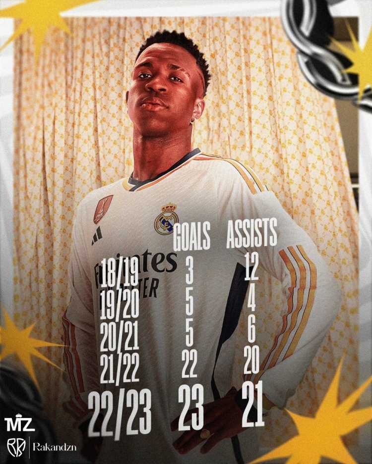 (图:维尼修斯成长明显,本泽马离队后成为当之无愧的进攻核心)