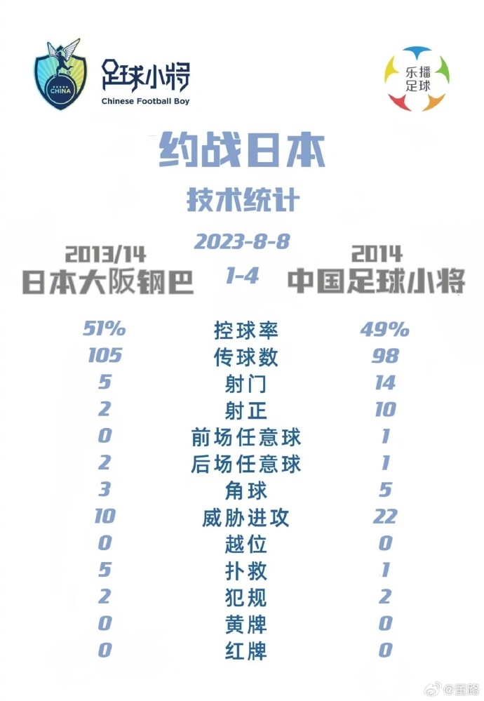 直播吧8月8日讯 最新消息,正在日本拉练比赛的中国足球小将14队以总比分7-2大破日本J联赛大阪钢巴13/14队。