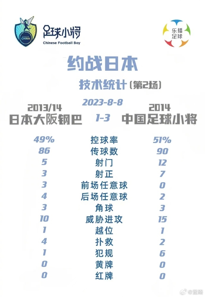 此前,中国足球小将曾和神户胜利船过招两场,总比分3-2击败对手。