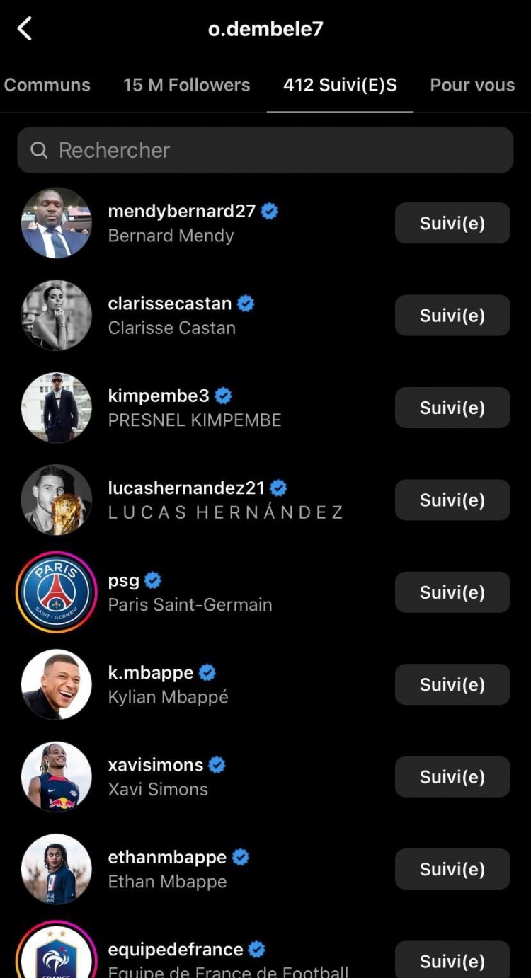 登贝莱也在社交媒体Instagram上关注了巴黎圣日尔曼的官方账号。姆巴佩、卢卡斯、金彭贝等法国国家队队友也将成为登贝莱的俱乐部队友。