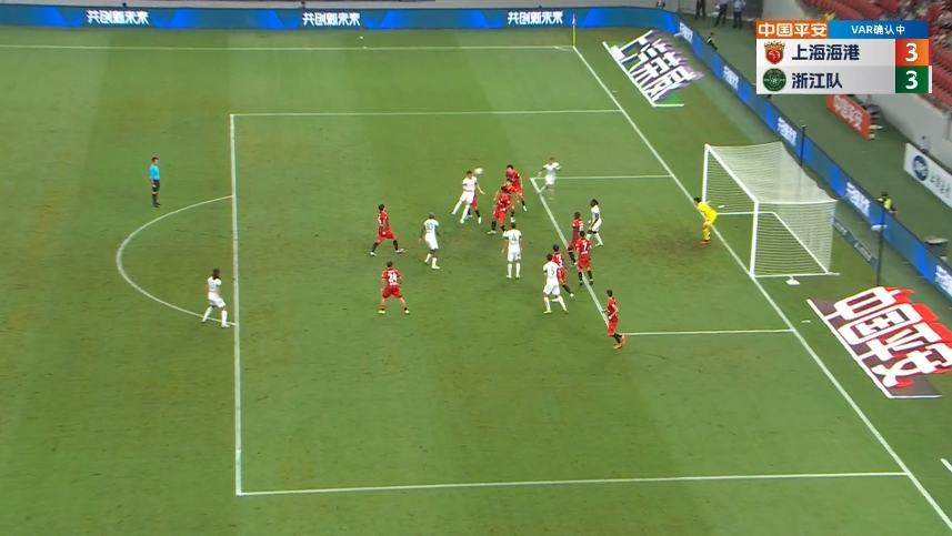直播吧08月12日讯 海港vs浙江第64分钟,弗兰克接角球头球破门完成梅开二度!比分来到3-3平!