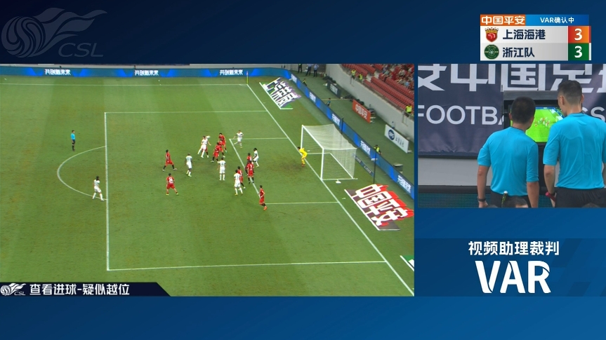 但是,VAR响了!埃弗拉有越位位置干扰门将的嫌疑!主裁判亲自去场边看回放,最终确认进球有效!
