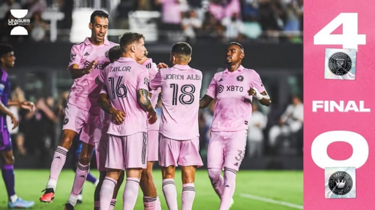 直播吧8月12日讯 联盟杯1/4决赛,迈阿密国际vs夏洛特FC。上半场马丁内斯点射建功,布斯克茨精准长传助泰勒破门。易边再战,马兰达自摆乌龙,梅西锦上添花5场打进8球!最终迈阿密国际4-0夏洛特FC晋级四强。