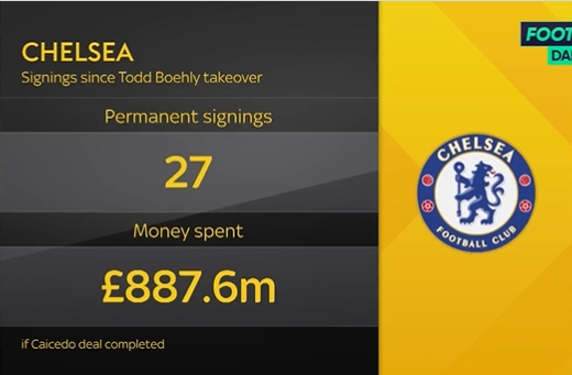 根据天空体育统计,完成这笔签约后,切尔西老板伯利在入主后三个转会窗签下了27名新援,总支出达到了8.876亿英镑(合10.3亿欧元)!
