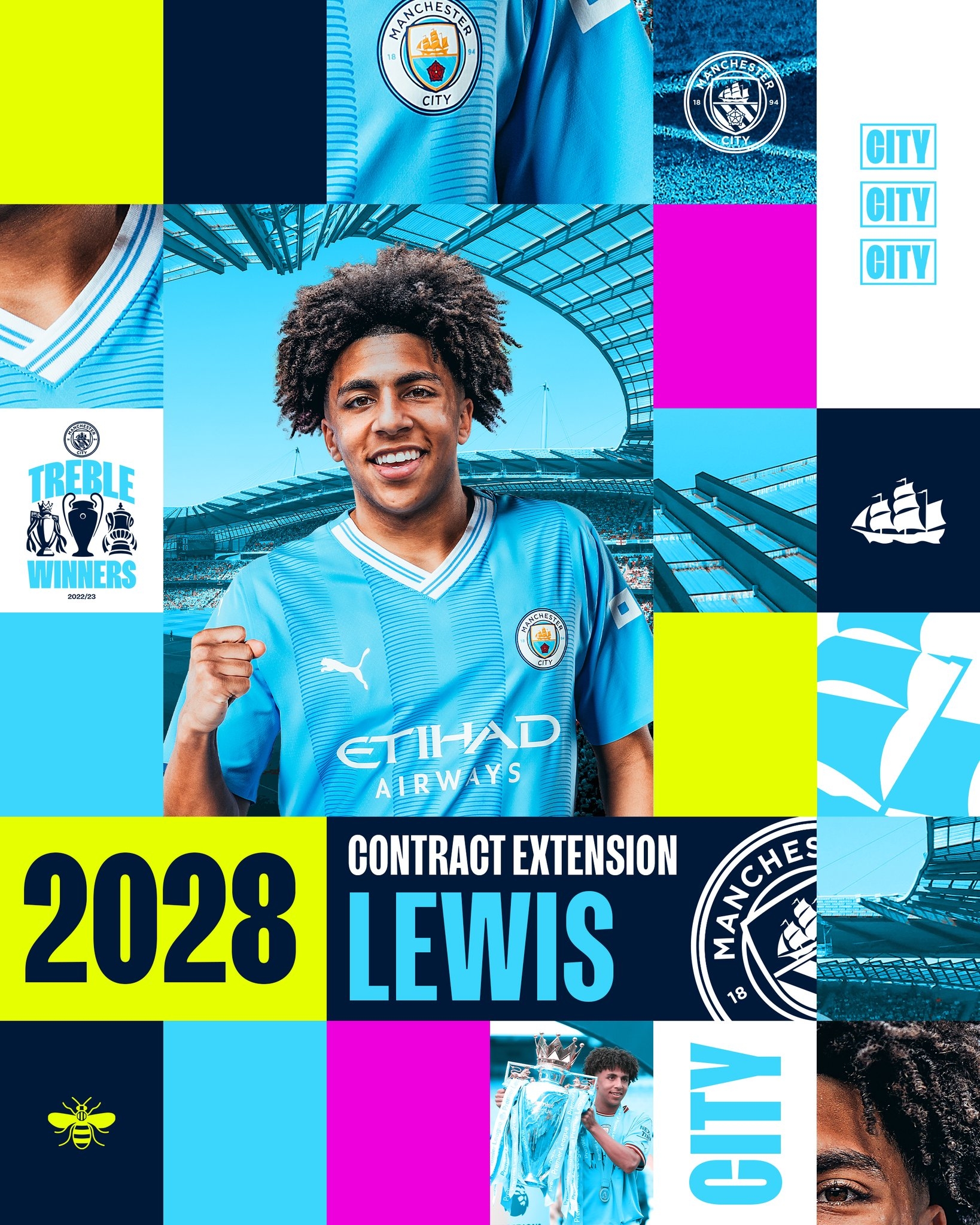 【官宣】里科·刘易斯和曼城签下了一份为期五年的新合同,他将在俱乐部效力至2028年夏。