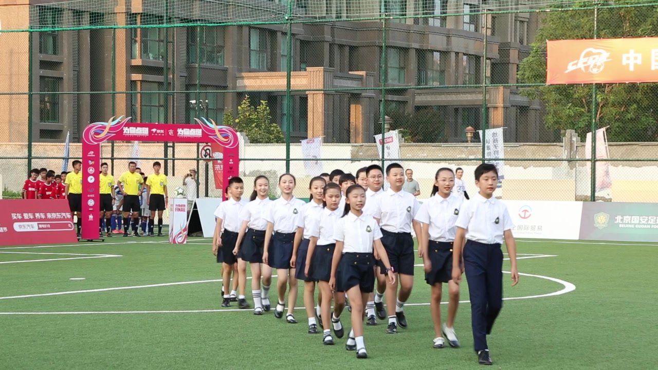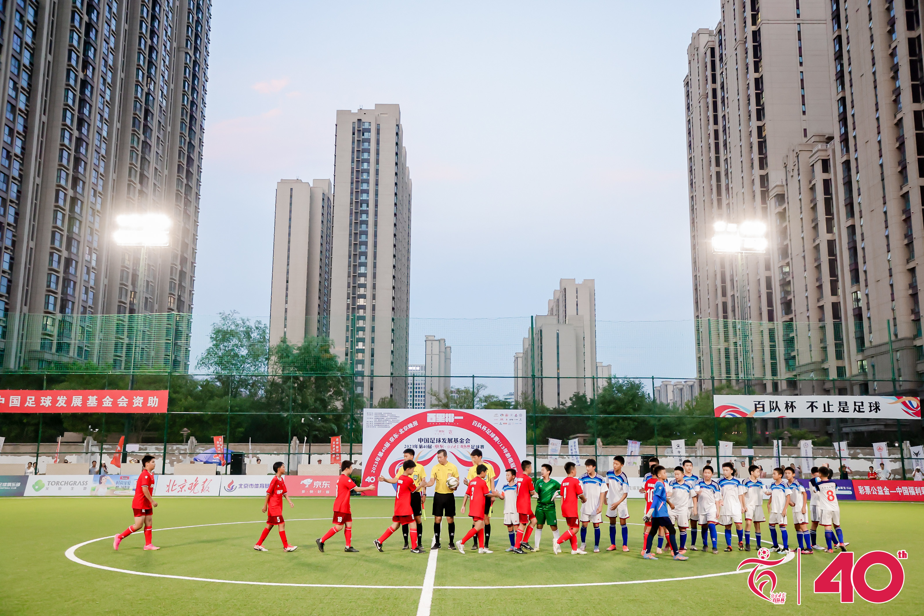 “热爱勇气 梦想 同伴未来~我们就是答案。拼搏 胜利 快乐 呐喊来吧~就在此刻点燃”。伴随着百队杯官方主题曲《点燃》的旋律,中国足球发展基金会第40届-京东-北京晚报百队杯足球赛U13男子组的决赛充满了激情和动力。
