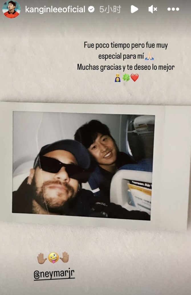 直播吧8月16日讯 内马尔离开巴黎,巴黎新援李刚仁社交媒体发文告别老大哥。