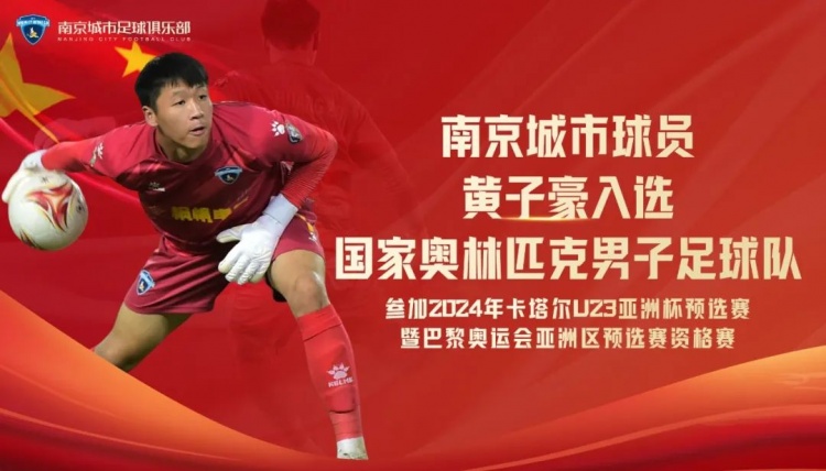 今天上午,中国奥林匹克男子足球队公布了本期集训名单。本期国奥队于8月19日至9月13日期间赴大连市组织集训并参加2024年卡塔尔U23亚洲杯预选赛暨巴黎奥运会亚洲区预选赛资格赛。南京城市队球员黄子豪入选大名单,恭喜我们的黄子豪!