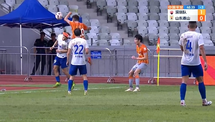 直播吧8月25日讯 中超24轮,深圳vs山东泰山。上半场尾声阶段,深圳队球员刘越直红下场!