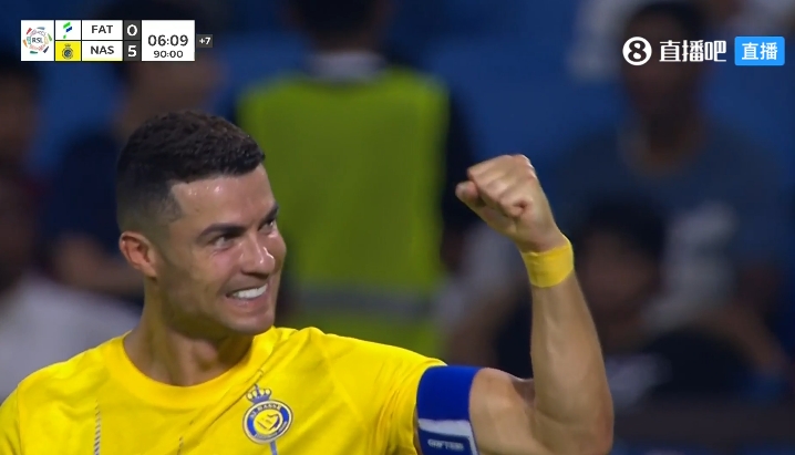 直播吧8月26日讯 沙特联第3轮,利雅得胜利客场5-0大胜哈萨征服。第96分钟,纳瓦夫横传门前,C罗打空门上演帽子戏法,本场三球一助造四球,率队拿下新赛季联赛首胜!