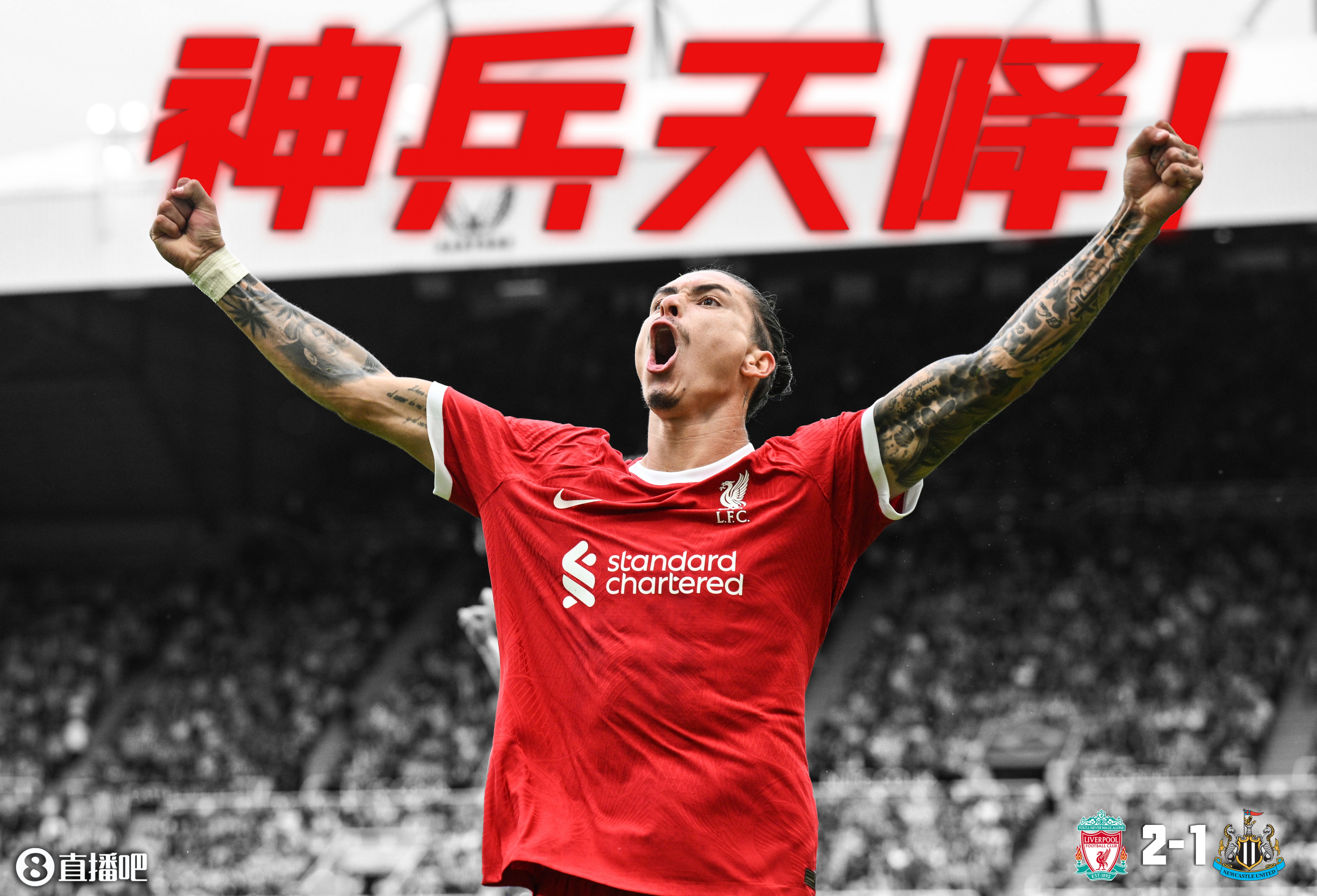 直播吧8月28日讯 利物浦vs纽卡第93分钟,萨拉赫助攻,替补登场的努涅斯补时绝杀,利物浦补时2-1纽卡。