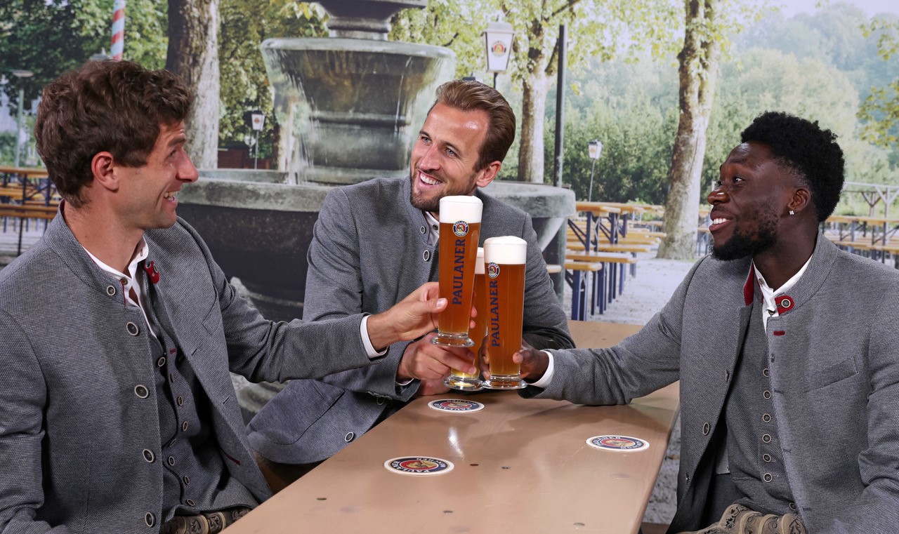 照片中凯恩穿着皮裤、哈弗尔靴和长袜,手持啤酒,体验了一把入乡随俗。