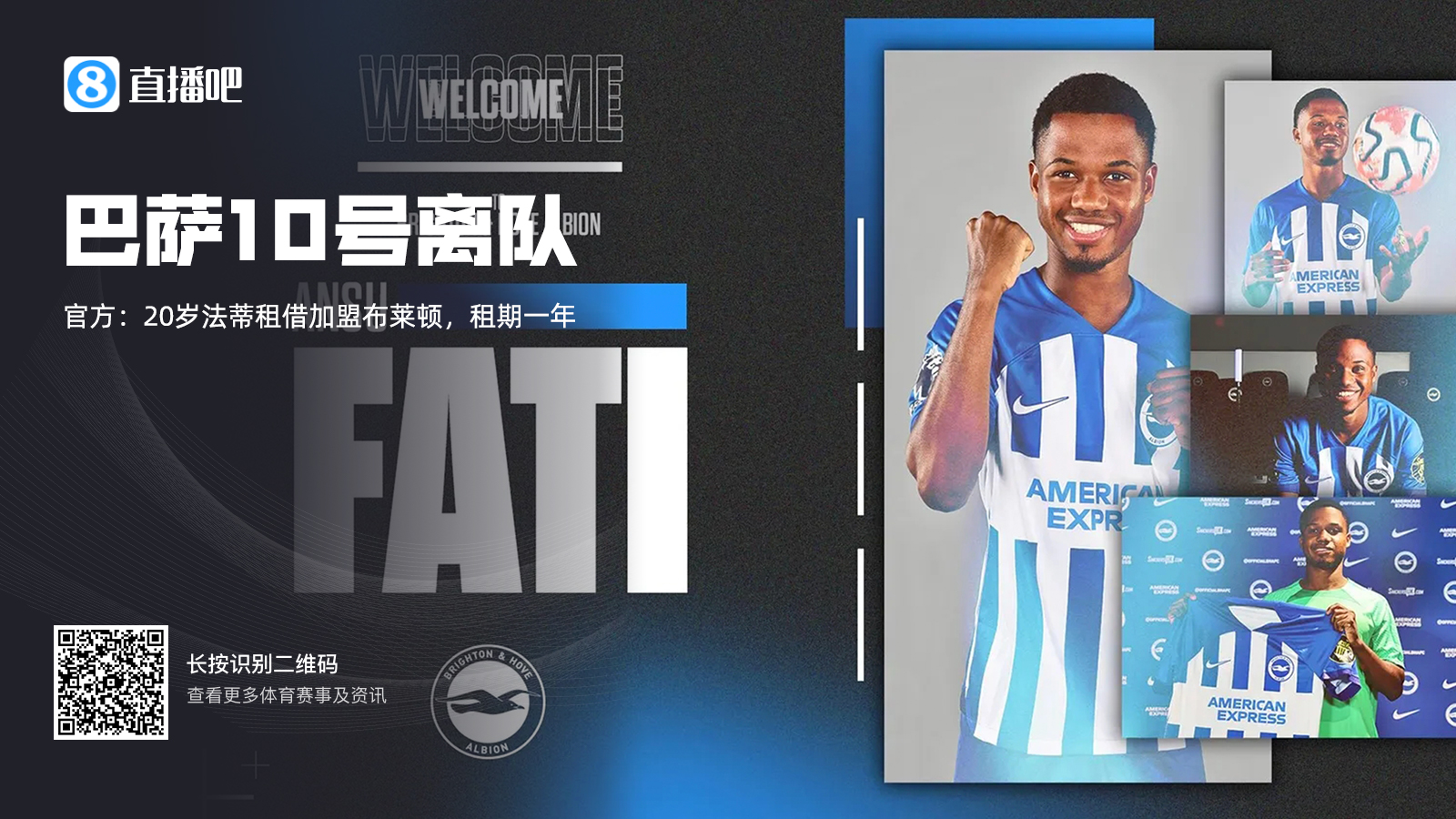 直播吧9月1日讯 官方消息,20岁巴萨前锋安苏-法蒂租借加盟布莱顿,租期一年,无买断选项。