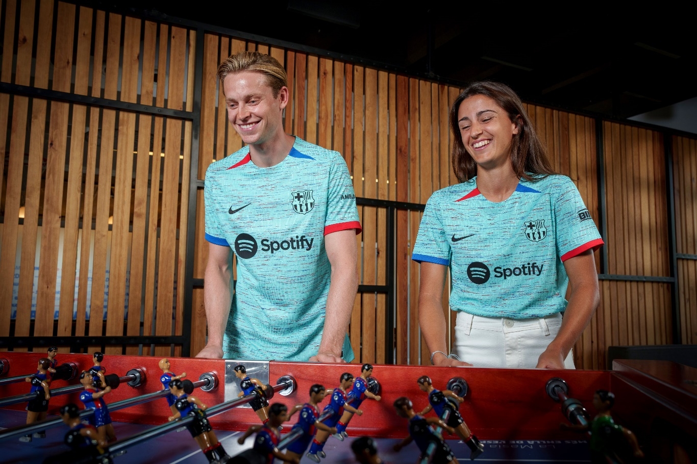巴塞罗那足球俱乐部 2023/24 赛季第三套球衣以其淡雅的水蓝色而引人注目,这也被认为是灵感和创造力的体现。它的设计突出了巴萨所代表的一切,包括历史、比赛风格以及在拉玛西亚培养出的青年才俊,他们的成长历程可以是一切的灵感泉源。