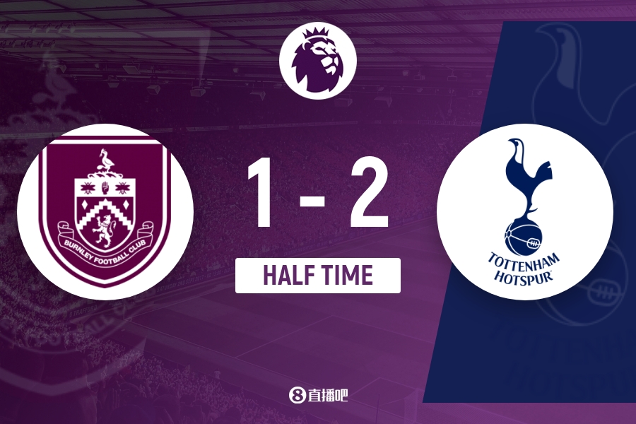 上半场比赛结束,热刺2-1伯恩利。