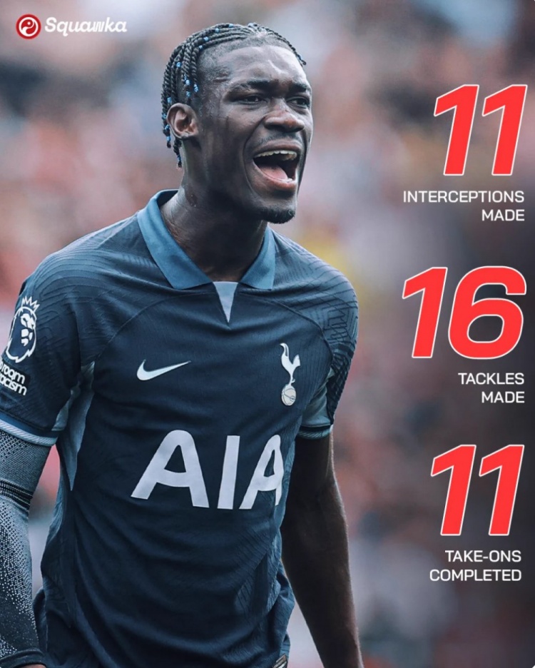 Squawka指出,比苏马本赛季在英超完成11次拦截、16次抢断、11次过人,他是五大联赛唯一这三项数据均上双的球员。