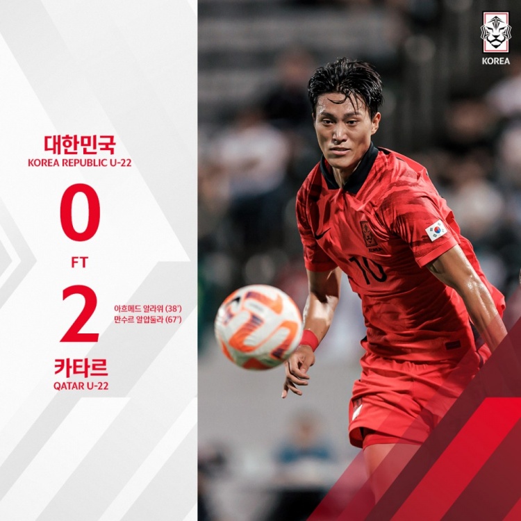 直播吧9月6日讯 U23亚洲杯预选赛B组首轮比赛,韩国以0-2的比分不敌卡塔尔。