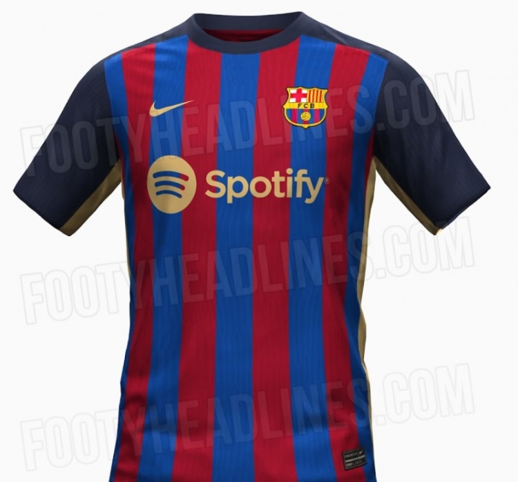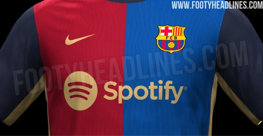 巴萨24-25赛季主场球衣采用蓝色、深蓝、红色和金色4种配色,设计方案目前有两种。