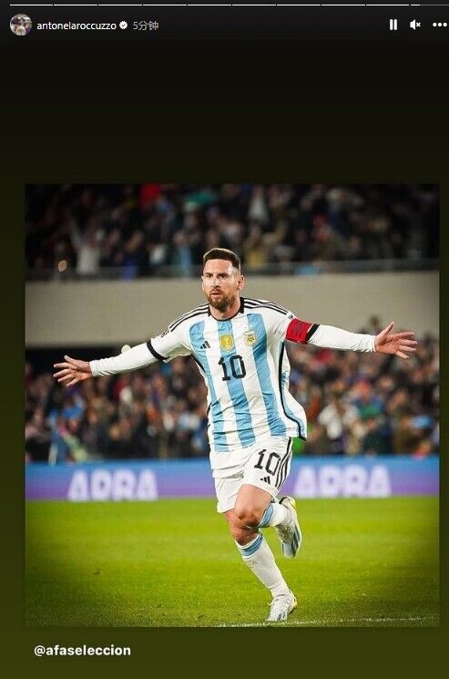 直播吧9月8日讯 在梅西任意球一击制胜帮助阿根廷1-0击败厄瓜多尔后,他的妻子安东内拉更新社媒,晒出梅西的庆祝照片。