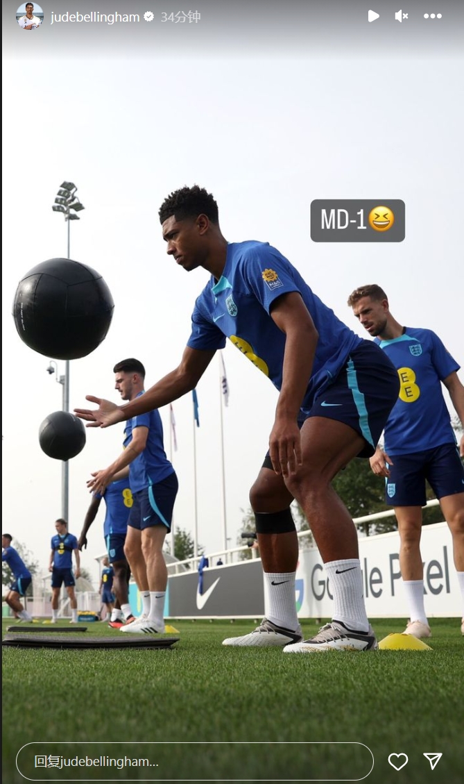 心情很好!贝林厄姆晒在英格兰队训练照:比赛前一天😆