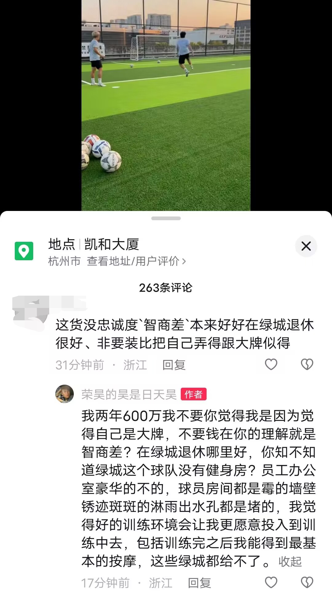 荣昊:“我两年600万我不要你觉得我是因为觉得自己是大牌,不要钱在你的理解就是智商差?在绿城退休哪里好,你知不知道绿城这个球队没有健身房?