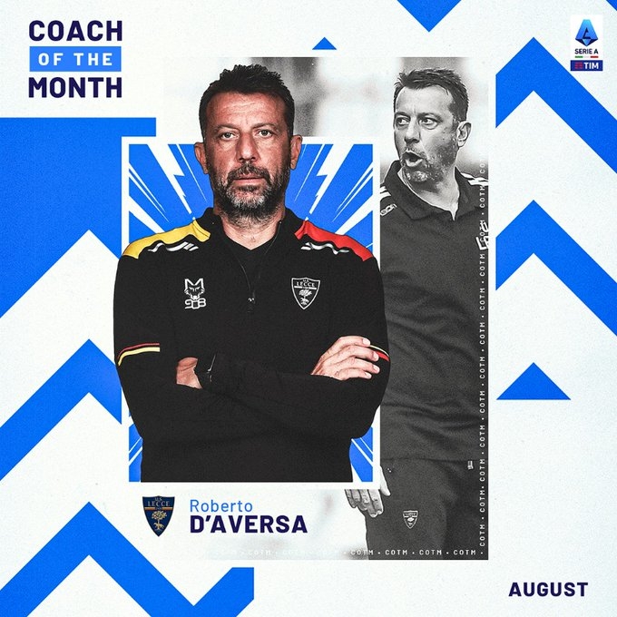 直播吧9月20日讯 意甲联赛官方宣布,莱切主教练罗伯托-达韦尔萨当选8月联赛最佳教练。