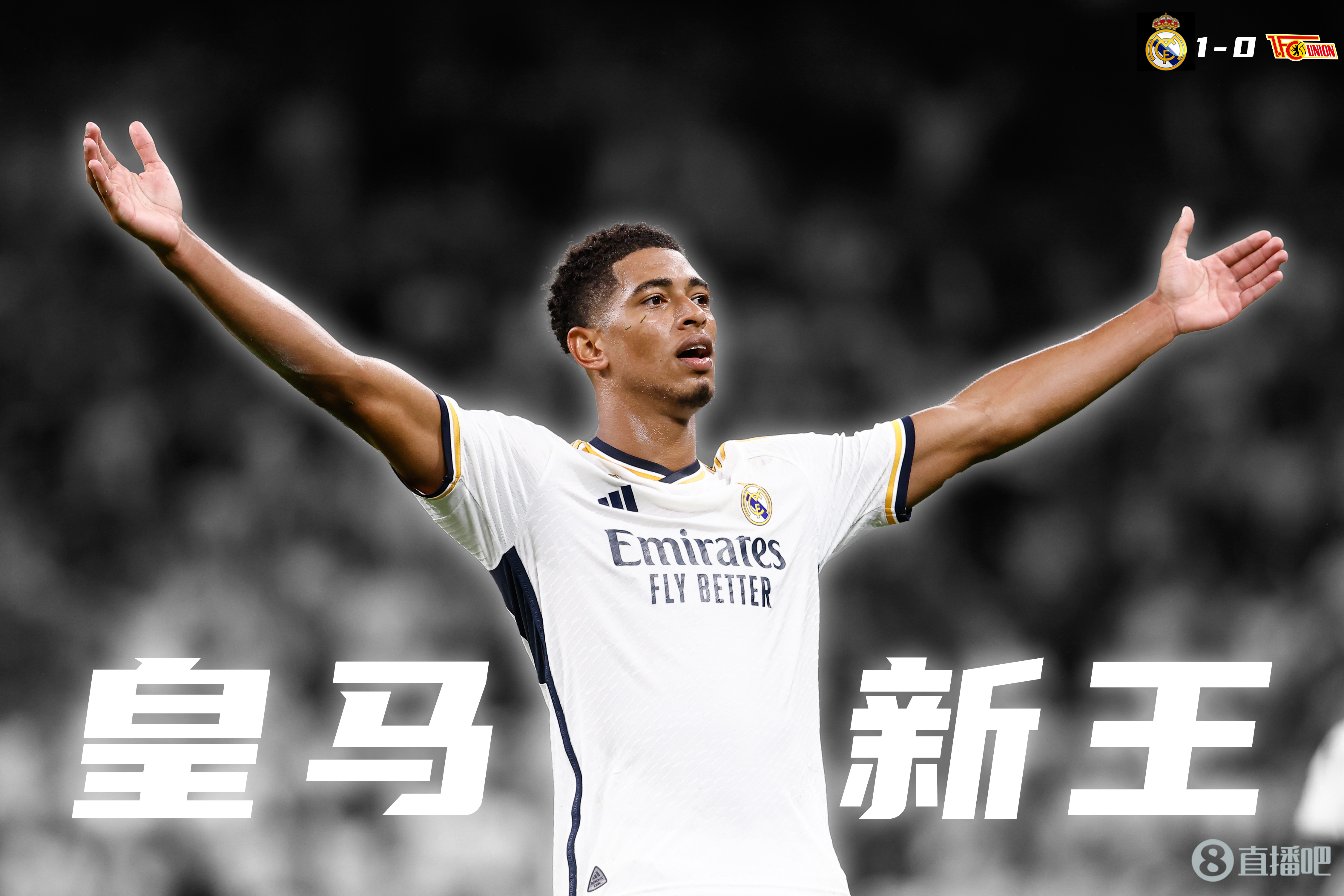 直播吧09月21日讯 欧冠首轮,皇马vs柏林联合,补时阶段,巴尔韦德远射被扑,贝林厄姆禁区补射破门!皇马1-0柏林联合!