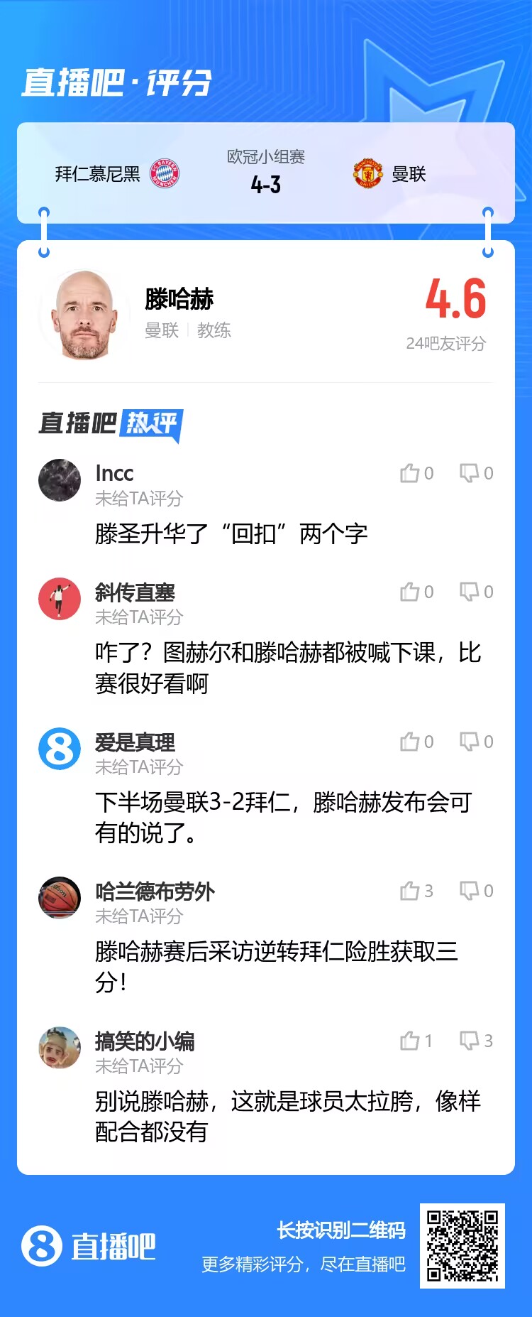 >评分4.6分!吧友锐评滕哈赫:滕圣升华了“回扣”两个字